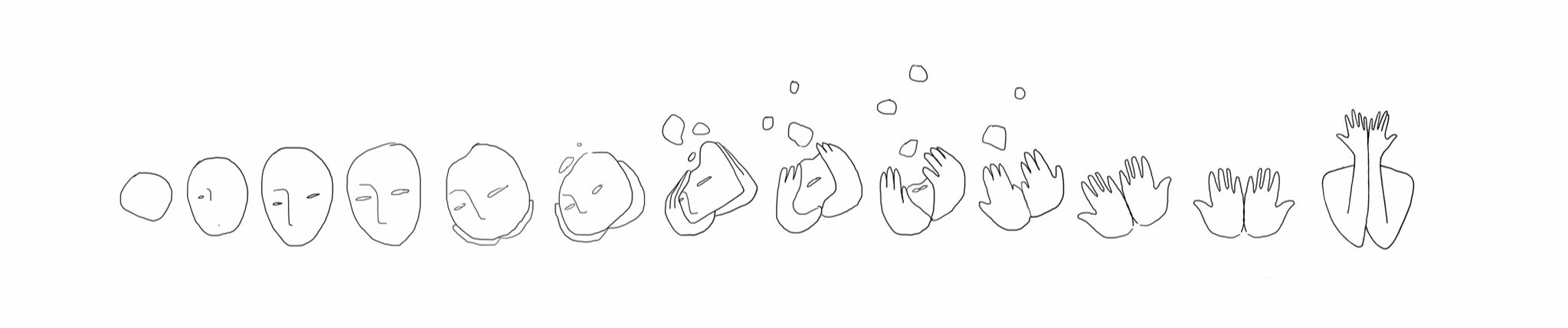Derrière la forme à laquelle est portée une attention toute particulière, s’appose le son doucement et nouvellement électronique de Jumo. Une sonorité qui se transforme et devient ambivalente, chemin musical mélancolique qui naît tout comme la ligne surgit, se métamorphose en points puis se redessine pour faire apparaître derrière l’abstrait le visage figuratif.