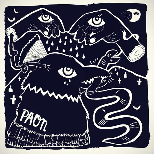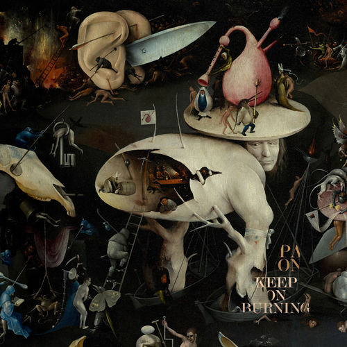 Et Paon ! Avec sa pop/rock rugueuse, le groupe est à la fois aussi prude et dévergondé qu’une ado provocante et acidulée. On retrouve aussi bien dans la musique que dans l’artwork, cette idée de transgression des genres et de références bibliques quasi-sacrilèges. Déjà en 2013, la pochette de leur prometteur EP Shine Over, signée 13Pulsions montrait des aspects un brin prophétiques. Un serpent se faisait dévorer par un paon surréaliste, sous l’œil omniscient de deux mains tranchées. Le tout entouré de tombes éparses. Et pour pousser à fond la thématique de leur nouvel album éponyme, Paon propose comme artwork du single « Keep on Burning », un morceau choisi de l’Enfer, une autre partie du triptyque de Jérôme Bosch.