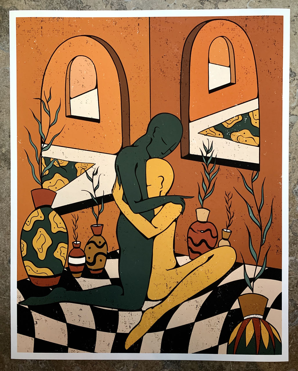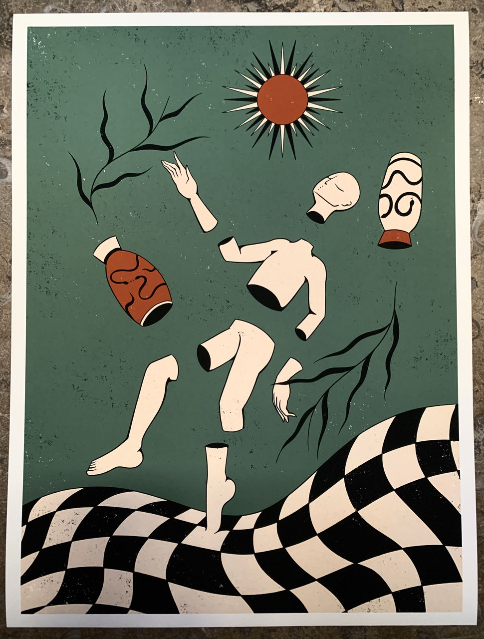 Tamburi Neri. Si le duo vient de Milan, c’est plus à l’est, en Inde par exemple, qu’il trouve une partie de ses influences iconographiques. Le serpent d’abord (ici, c’est un cobra) joue depuis longtemps un rôle-clé au sein de la religion et philosophie bouddhiste, de même que le Trishula, ou trident, associé à la divinité Shiva, l’un des trois dieux primordiaux hindous. Au trident, le groupe a également associé le tambourin et le cor afin de « symboliser la musique », comme nous l’écrit le groupe.« Le troisième élément est l’échiquier qui représente la vie, ses mouvements ou ses choix et le quatrième est le soleil, qui est l’énergie vitale et dans ce cas nous ramène également à notre princesse du soleil levant ‘Hiroko’ », écrit aussi un groupe qui aura pu compter sur le travail d’une artiste native de Valence (dans la Drôme) mais résidente lyonnaise, Lena Mačka, illustratrice autrice d’une œuvre introspective, spirituelle, emplie de symboles et d’un puissant sentiment global d’apaisement. L’œuvre de Lena Mačka questionne les tréfonds du cerveau et s’inscrit parfois aussi sur le corps, puisque certains de ses dessins deviennent parfois des tatouages gravées sur les peaux des autres. Comme quoi certains savent les mater, les ombres, ou en tout cas s’habituer à leur présence qui englobe tout, et qui double, toujours, les propres représentations que l’on peut avoir de soi-même. Tamburi Neri (Facebook / Instagram) Lena Mačka (Site officiel / Instagram) Tamburi Neri, Ombre, 2021, Worst Records, artwork de Lena Mačka